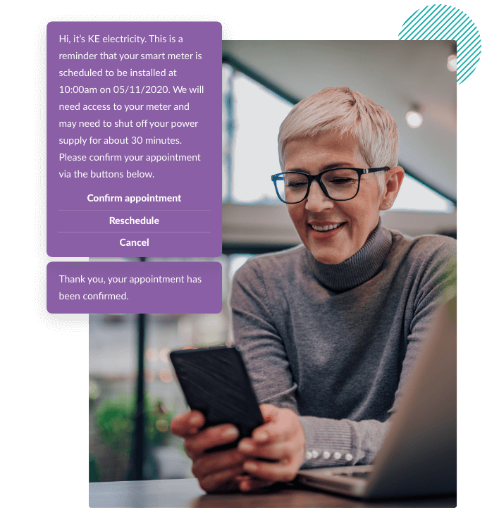 Esendex helps utility, energy and power providers to streamline communications with appointment reminders, account updates, disruption notices and seamless customer support. Our SMS solutions enable you to meet customer demand, build trust and reduce the risk of accounts falling into arrears.