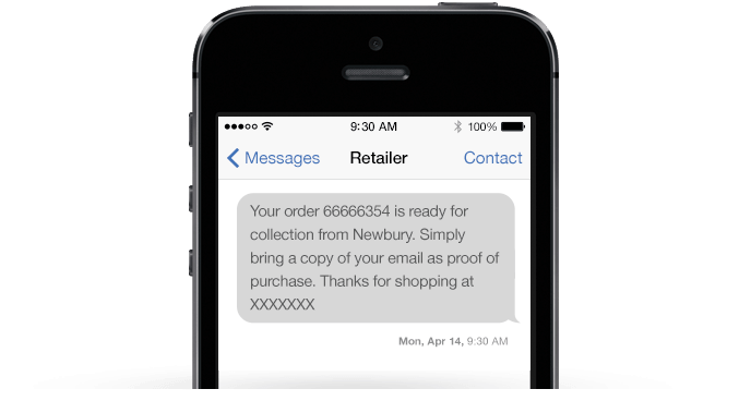 This process is in place for ongoing communication throughout the delivery process, keeping customers informed of when their purchase will be available in store via email and text. The great thing about SMS is that everyone carries their mobile around with them, wherever they go – this means they’ll be informed immediately when their order is ready to collect!